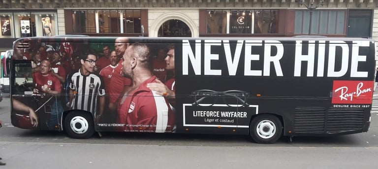 Impact visuel maximal sur bus et flottes de véhicules (Projet Ray-Ban).