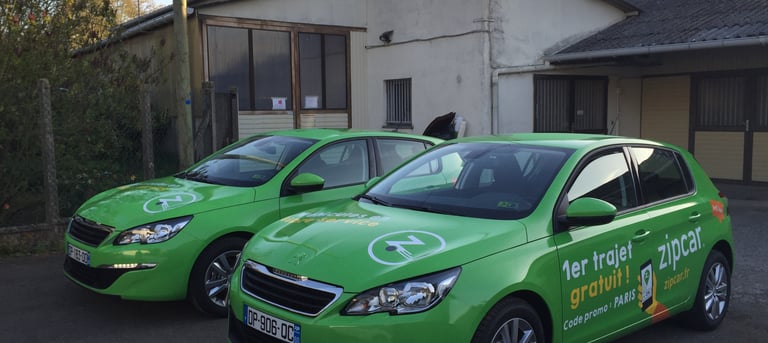 Déploiement d'identité visuelle sur parcs automobiles. Homogénéité garantie sur tous vos véhicules (Projet Zipcar).
